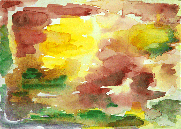 EVENING, 2019, Watercolour on off-white board 249 x 350 mm © Helga Joergens back next