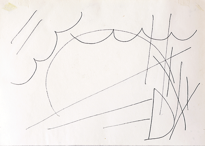 Here you can see the front and back of one of my monoprints with the black lines printed by drawing them in biro from the reverse while the front lies on a surface covered with oil-based ink.